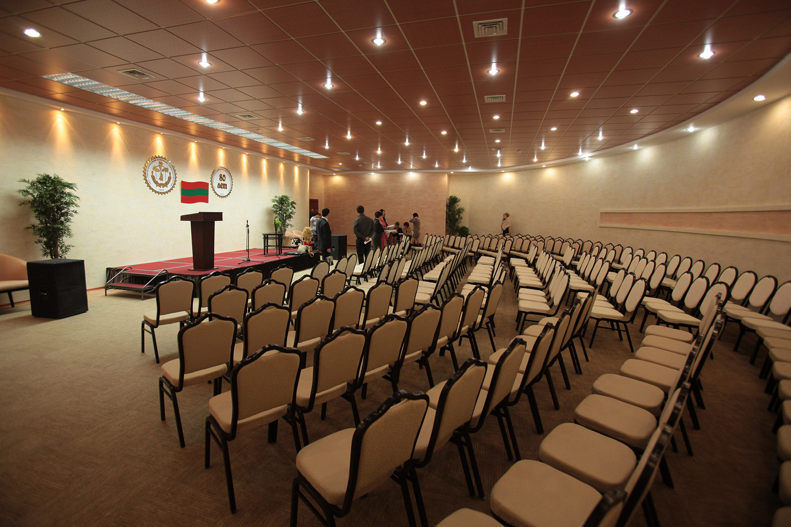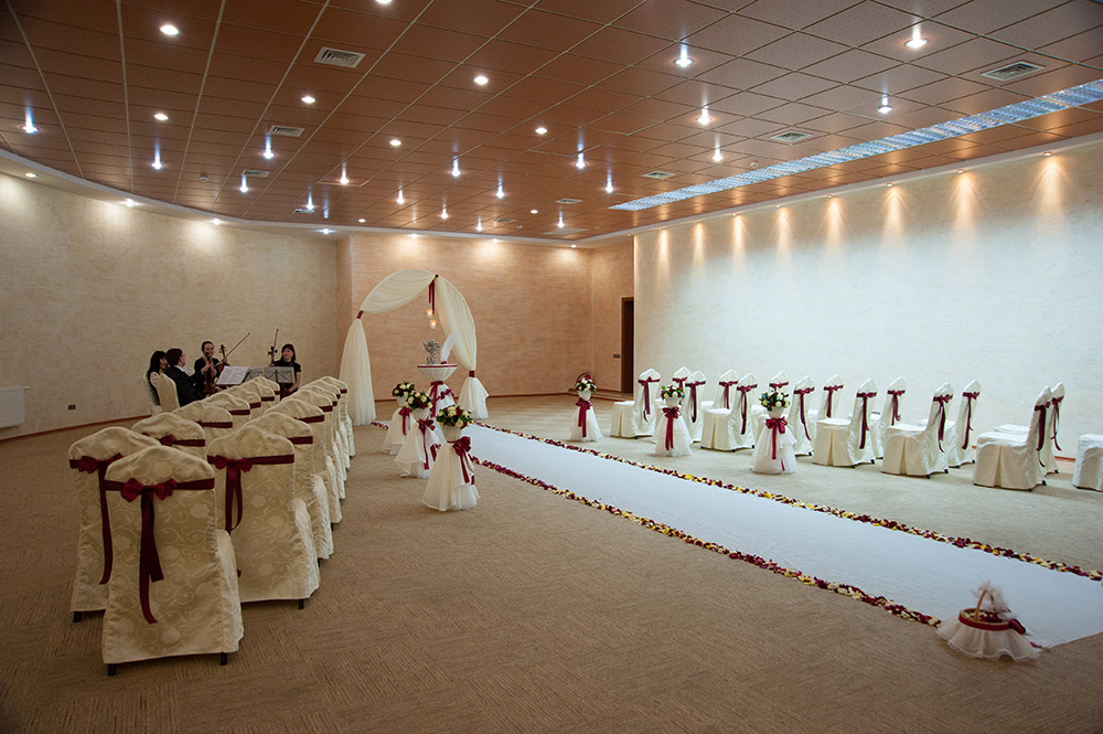 Мы предлагаем вам Конференц зал вместимостью до 200 человек для проведения совершенно разных мероприятий: бизнес тренинги и семинары, пресс-конференции, международные форумы и приемы официальных делегаций, а также праздничные корпоративные мероприятия, свадебные выездные росписи…
