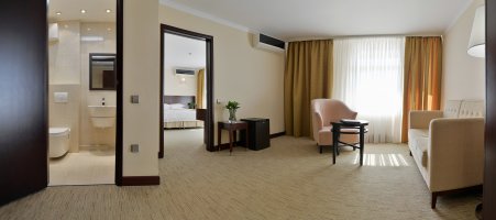Комфортный отдых, хорошее настроение и приятные воспоминания Вам обеспечат номера категории Люкс. Просторный двухкомнатный номер с балконом: спальня с большой двуспальной кроватью (или двумя раздельными кроватями) и гостиная с удобным диваном. Оснащен просторной ванной комнатой с ванной и душем, а также дополнительным санузлом для гостей.