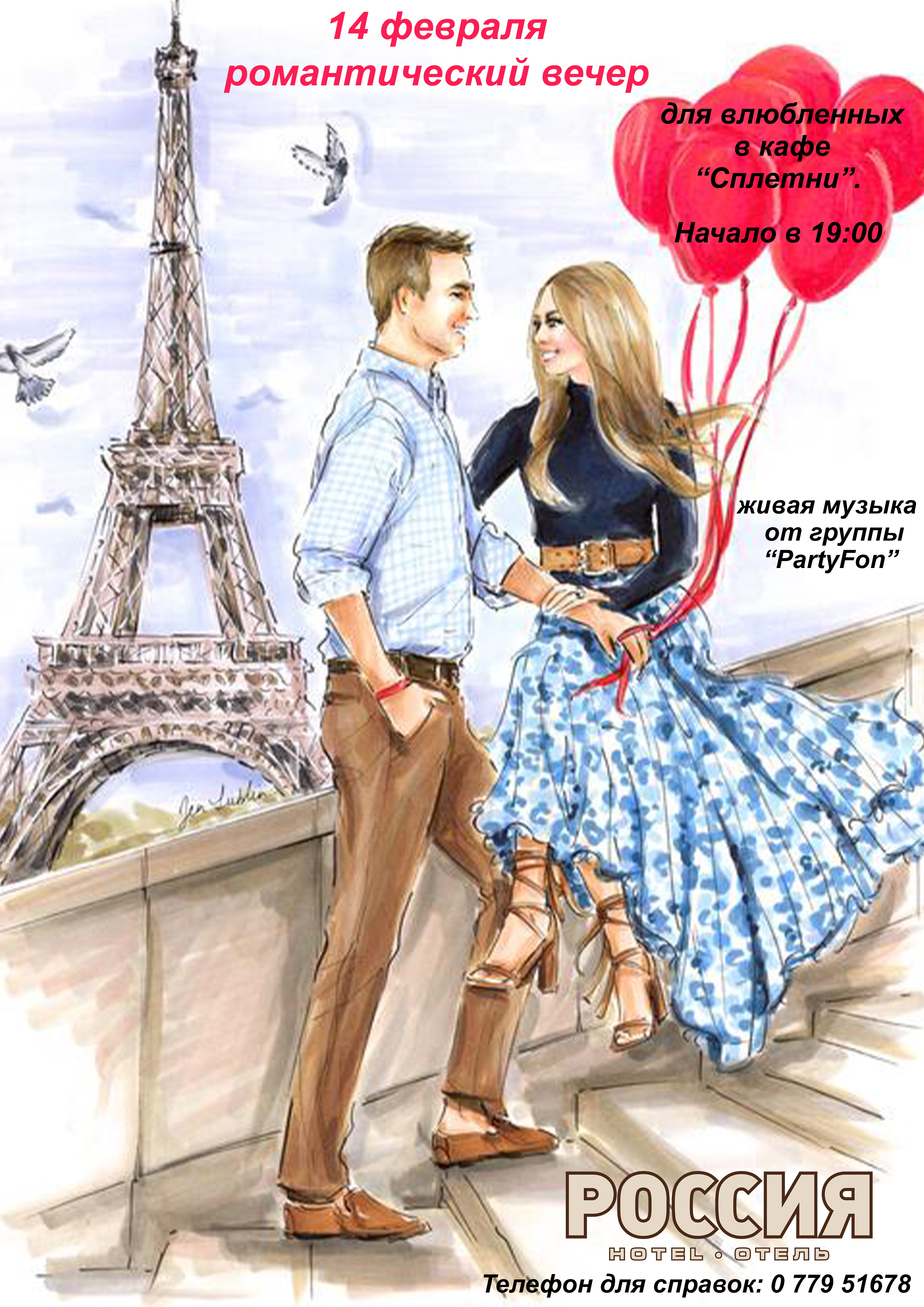 14 февраля романтический вечер для влюбленных в кафе “Сплетни”.