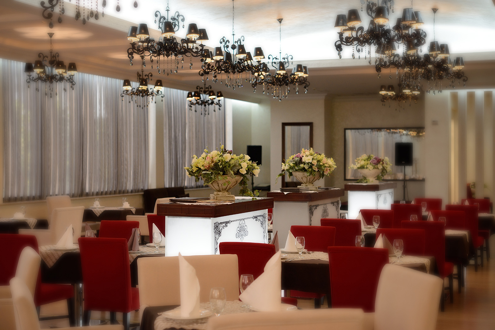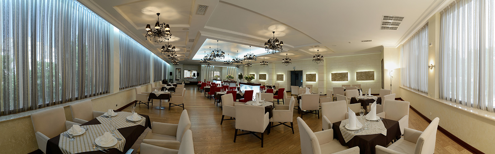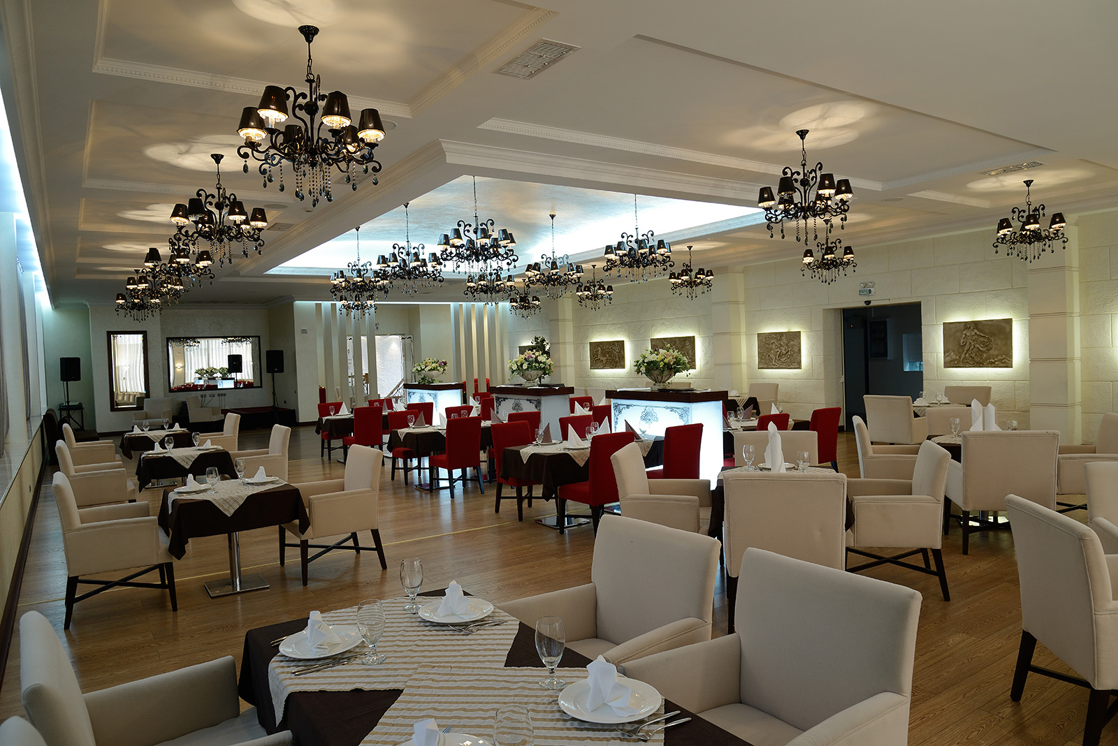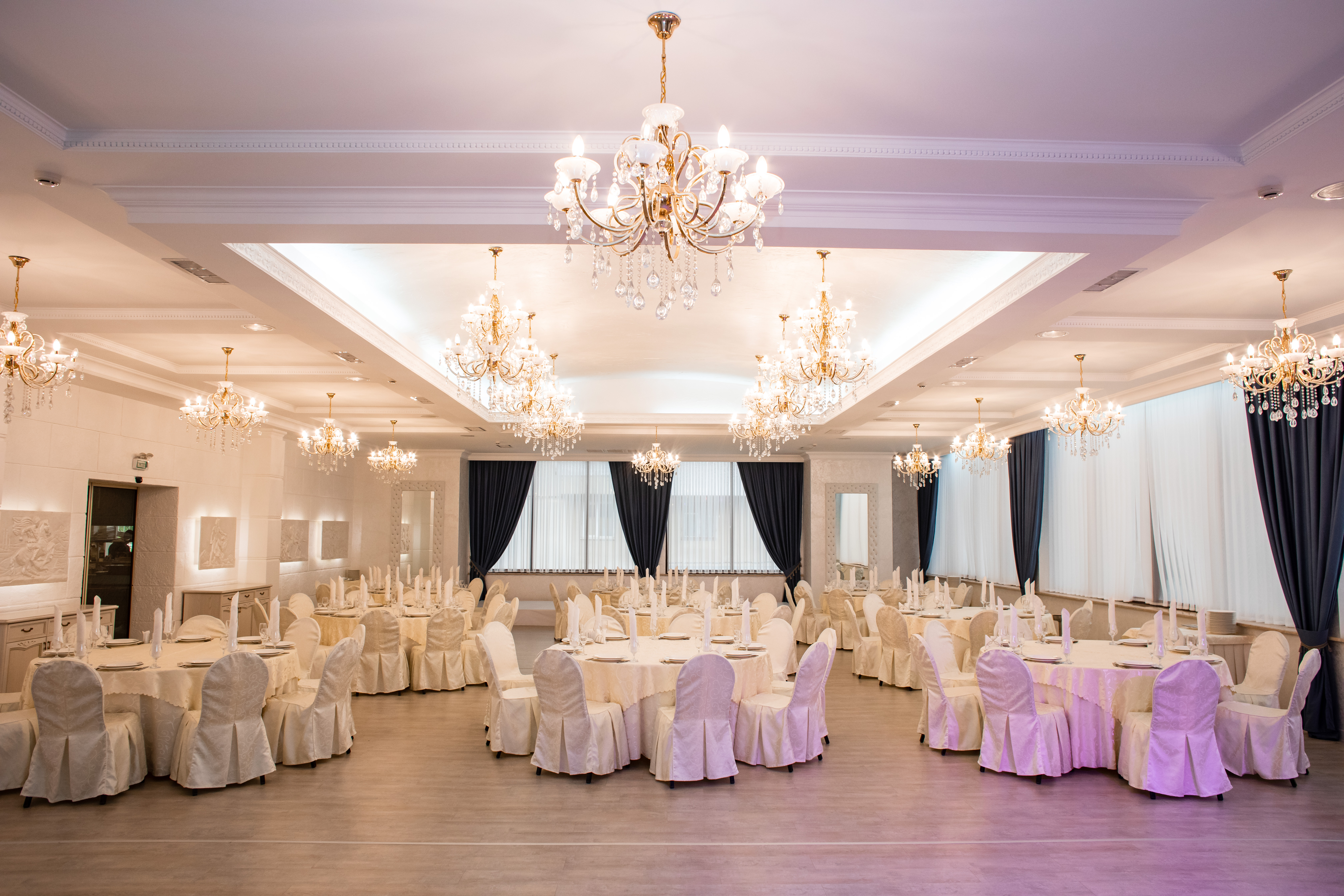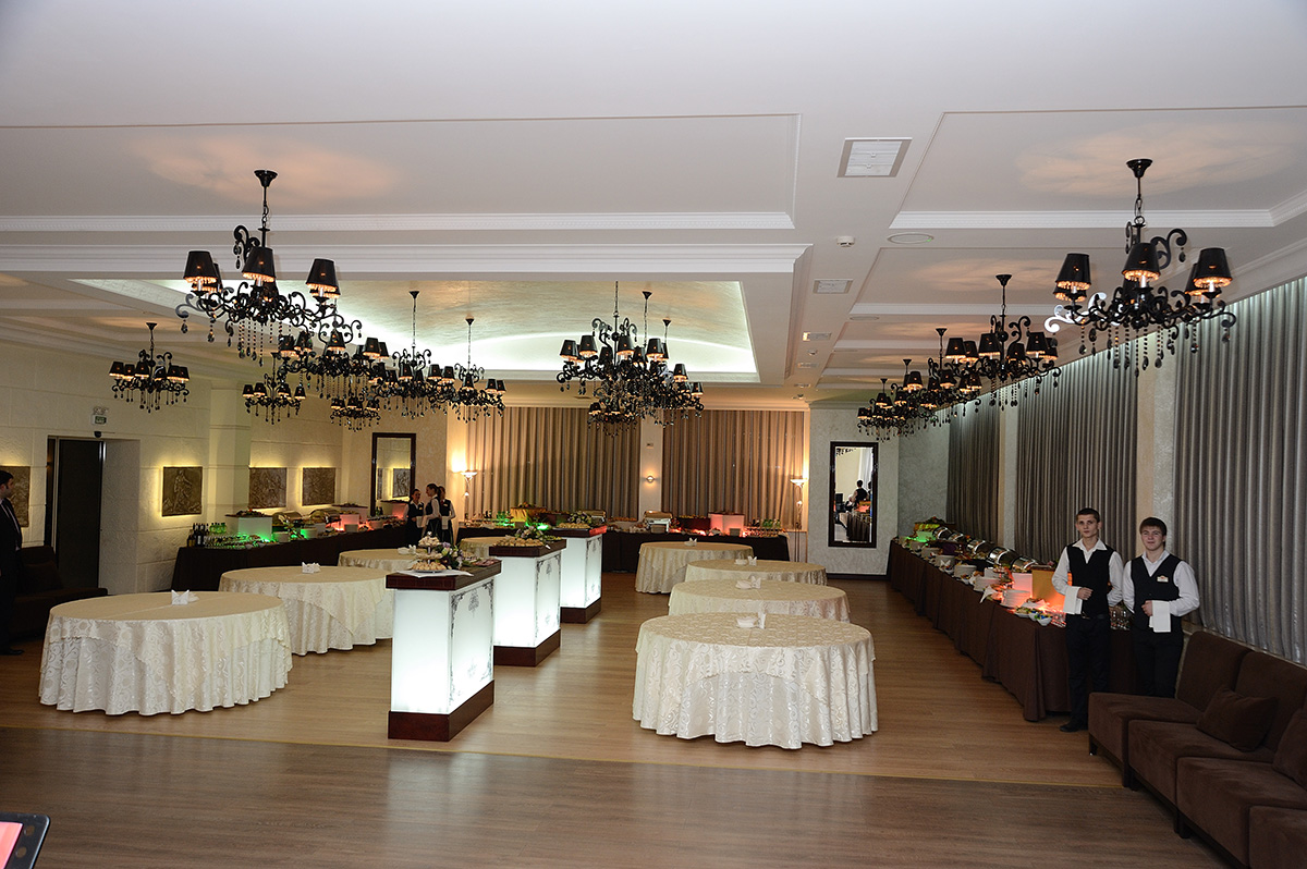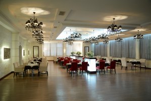 Просторный, уютный зал выполнен в современном классическом стиле, что позволяет проводить в нем самые различные мероприятия.
